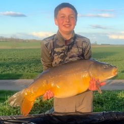First french trip with my son who is 9. We had 8 carp in total with an upper 40 and rest being 30s. Weather was very cold with temperatures dropping to -2 at night. Rod ripped off at 6am and after a 15 minute battle i banked my PB 64.2. Not realising how big it actually was until lifting it from the water with a struggle suddenly buzzing as I knew I had a pb on the bank!! Thank you mainline baits again for putting fish on the bank.
