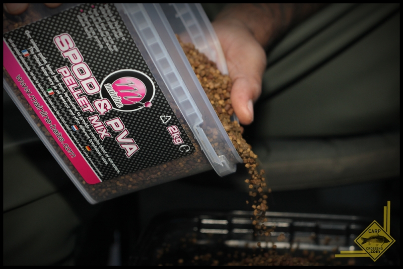 The lake was full of weed and I had no choice but to present rigs straight into it. It takes some tactical thought to catch big carp in amongst thick weed. With Solid bags the weapon of choice, quickly and easily prepared with the Fox Rapide Load PVA bag system filled with the NEW Mainline Spod & PVA pellet mix and my favoured Mainline Cell hookbait I was assured of good presentation.