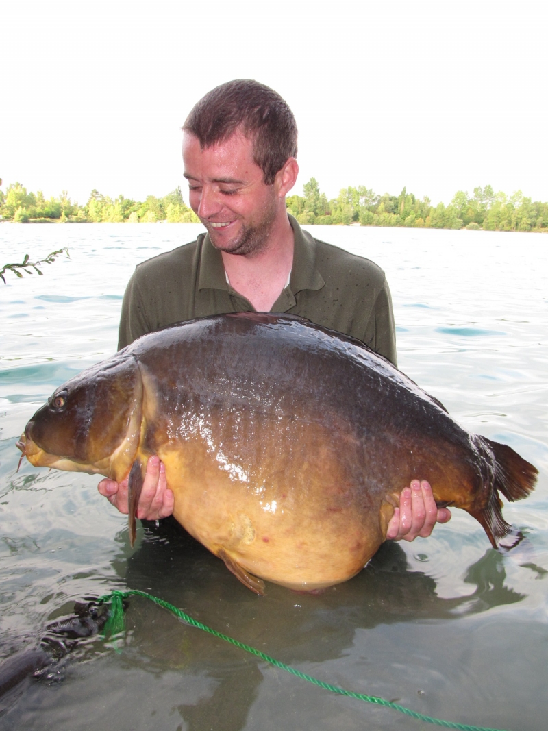 Coming all the way from the Republic of Ireland, lucky angler, Derek, broke his PB by over 20lbs when he landed the ‘Gut Bucket’ at an arm aching 56lbs 6ozs! Again, steadily baiting throughout the week with 3-4kgs of Cell boilies, each evening was the winning tactic.”