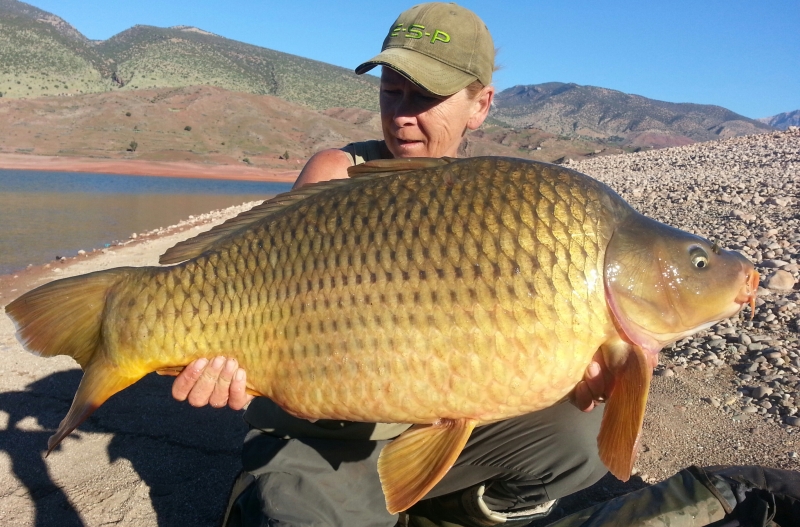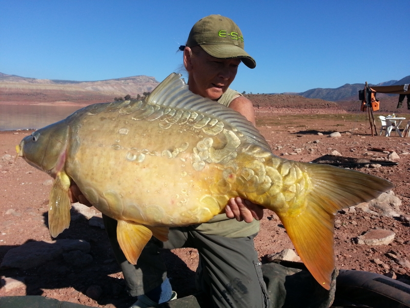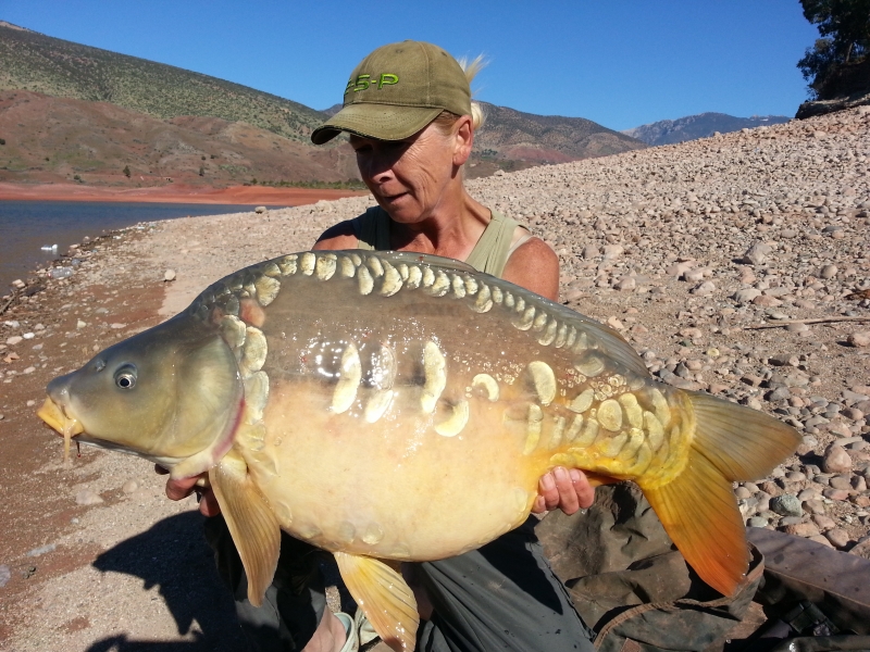 Mainline carper, Jo Green has just returned from a fantastic winter trip to Lac Bine el Ouidane Lake in Morocco. Over a hectic bite filled session Jo landed a staggering fifty-three carp fittingly topped off by a fifty - in the shape of this 52lb 12oz common!Cell boilies combined with Essential IB pop-ups or Cell Balanced Wafters doing the business for Jo.